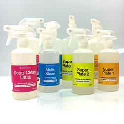 Limpiador de FOTOPOLÍMEROS / PLANCHAS / CLISÉS Super Plate 1 (Botella Gatillo) 1000ccLimpiador Origen USA para Limpieza de Clisés (Fotopolímeros, Planchas) que trabajan con Tintas AL SOLVENTE y UV; viene listo para usar y se comercializa en Botellas Gatillo de 1000cc.Leer mas